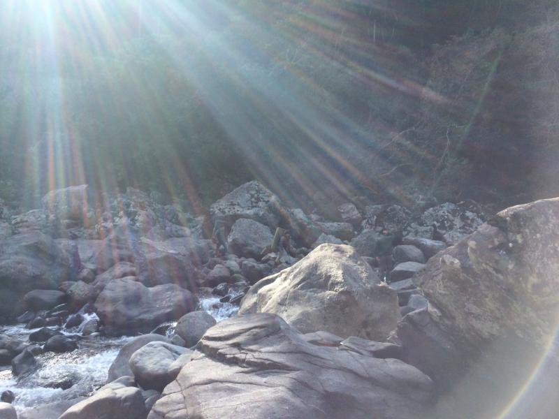 マットを背負って川を渡るので川に落ちないように注意して下さい。