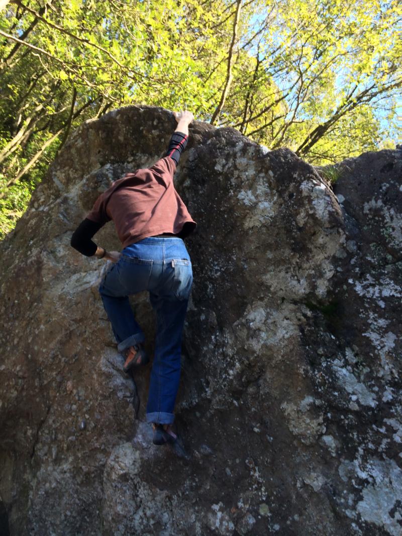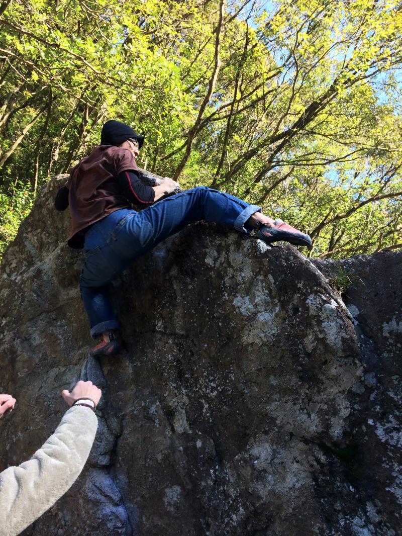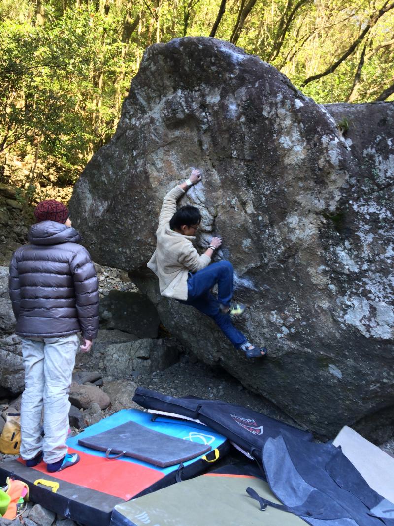 門出(3級)・・・完登 アップがてら皆でセッション、1手目のマッチが核心です。