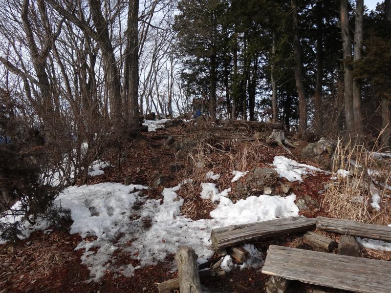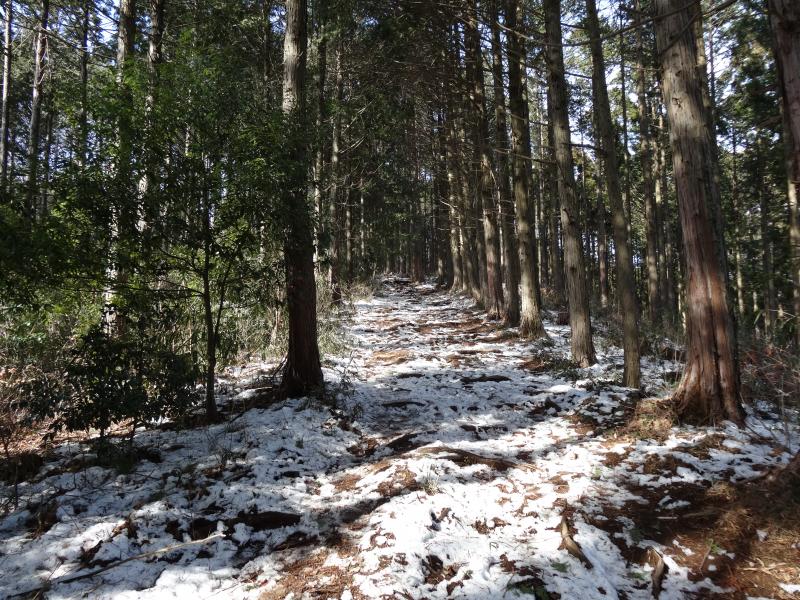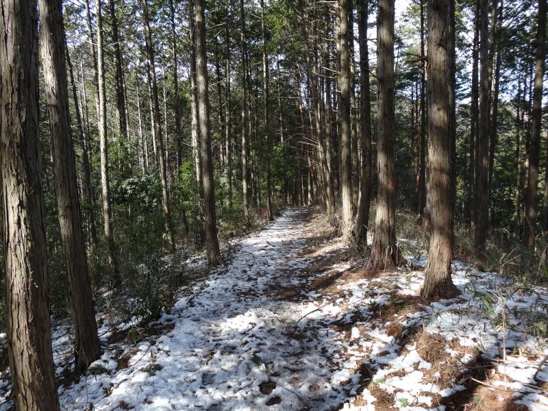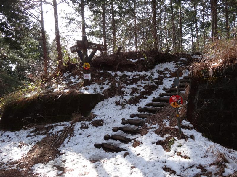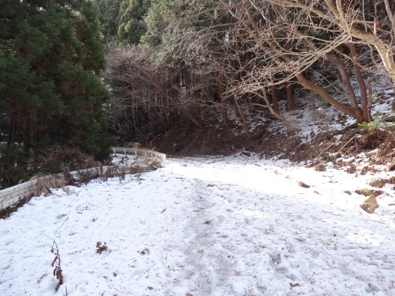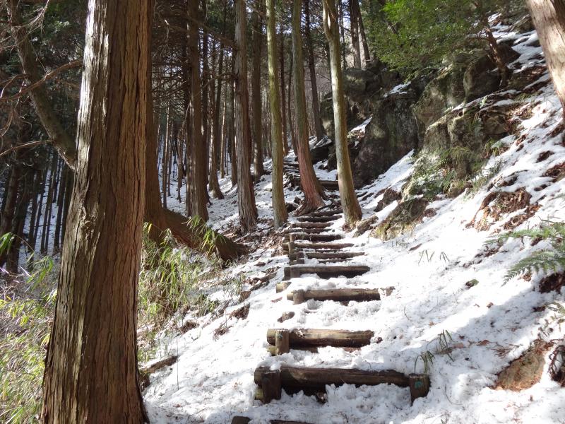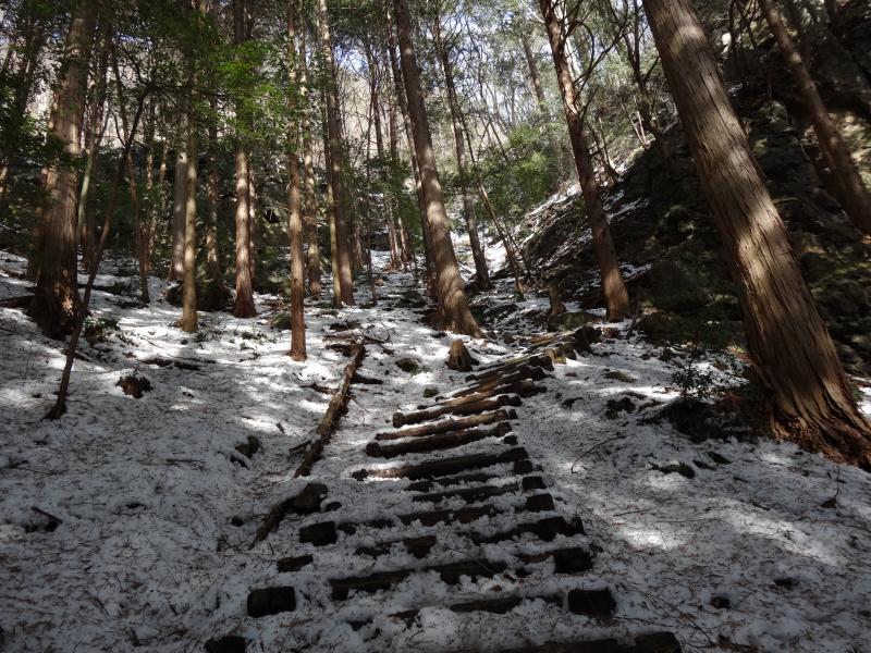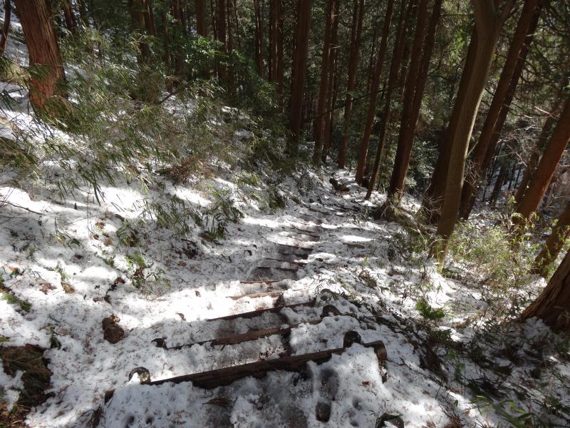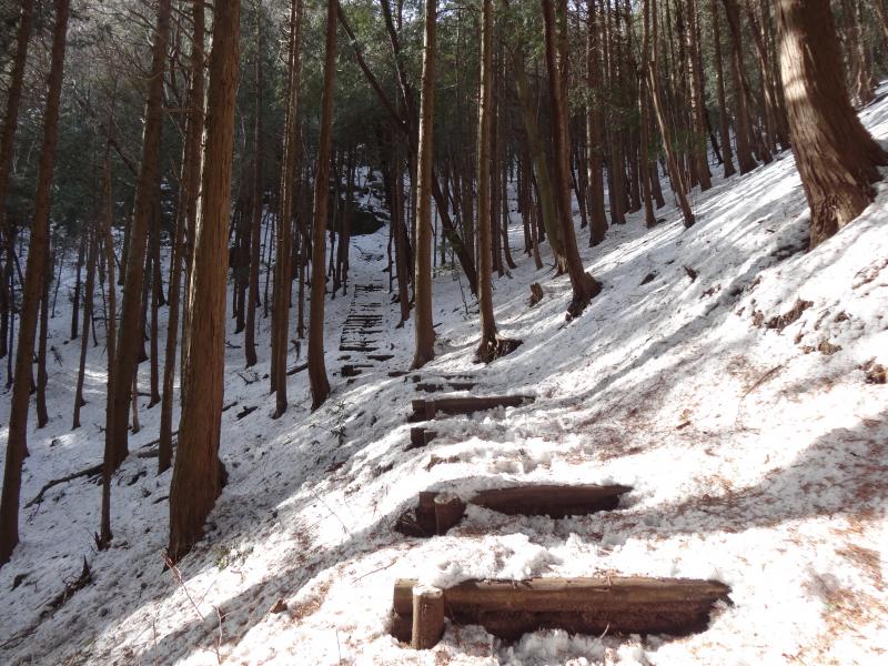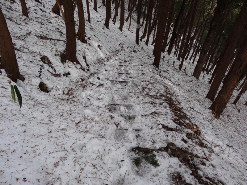 下山時、山頂~丸太階段の道が凍結しているので、非常に滑りやすく