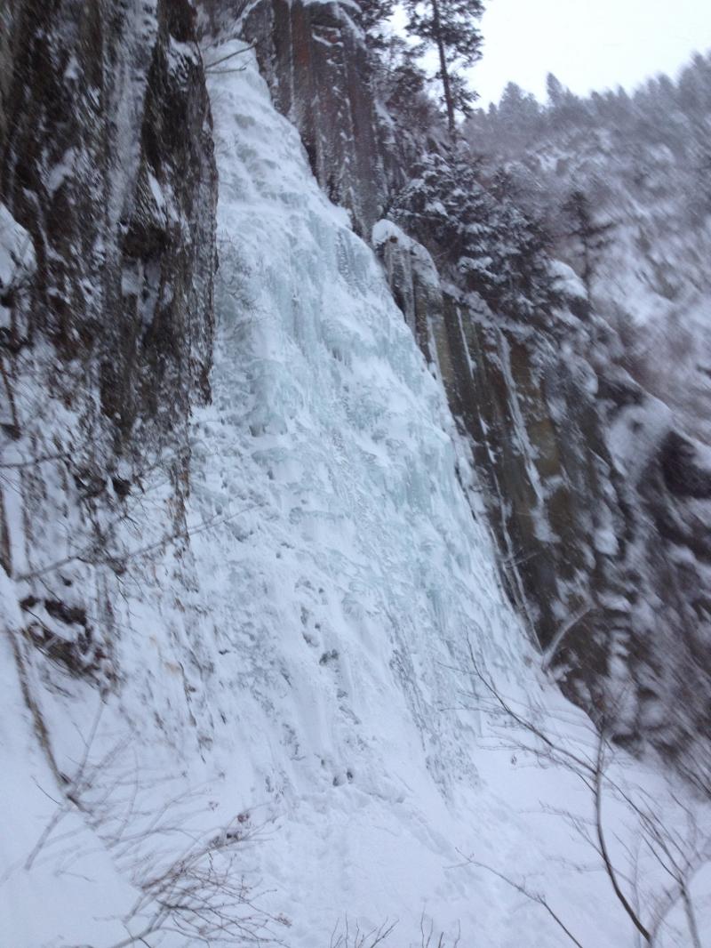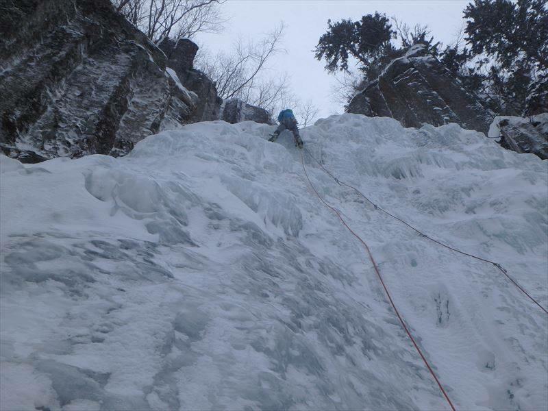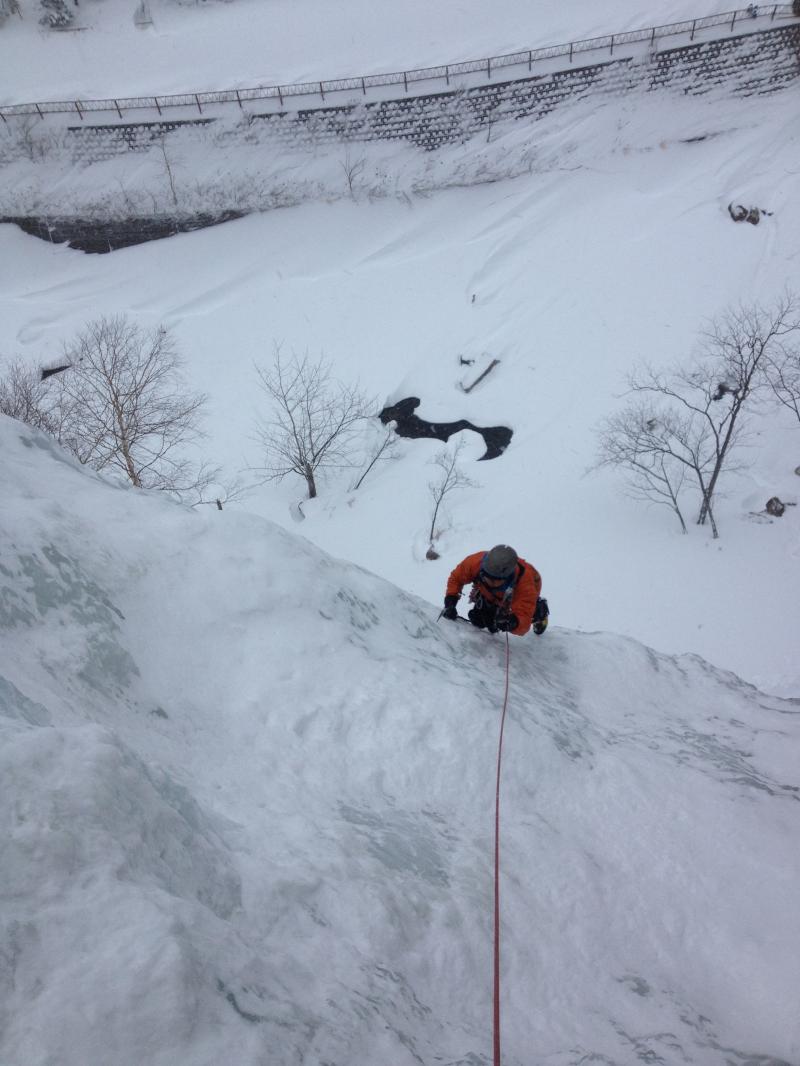 層雲峡のなかでも滝の形が美しく垂直入門にもうってつけのルートです。