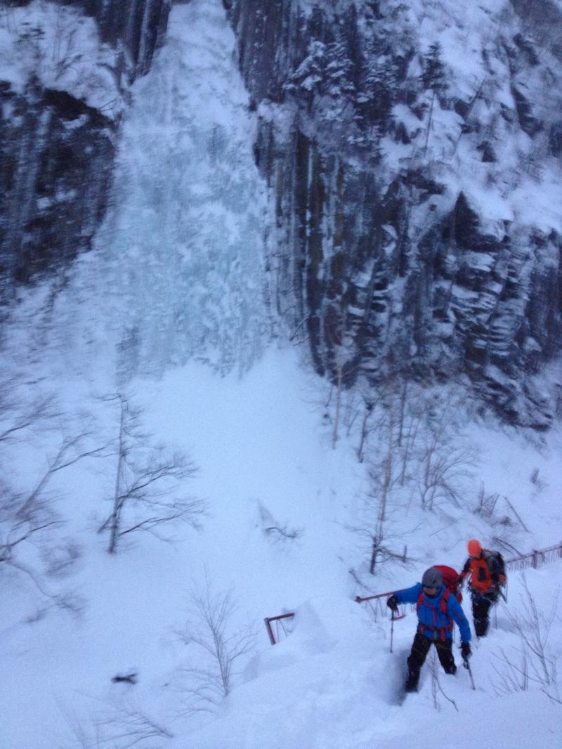滝の氷結は良好です。上部は雪が多くラッセルとなる。