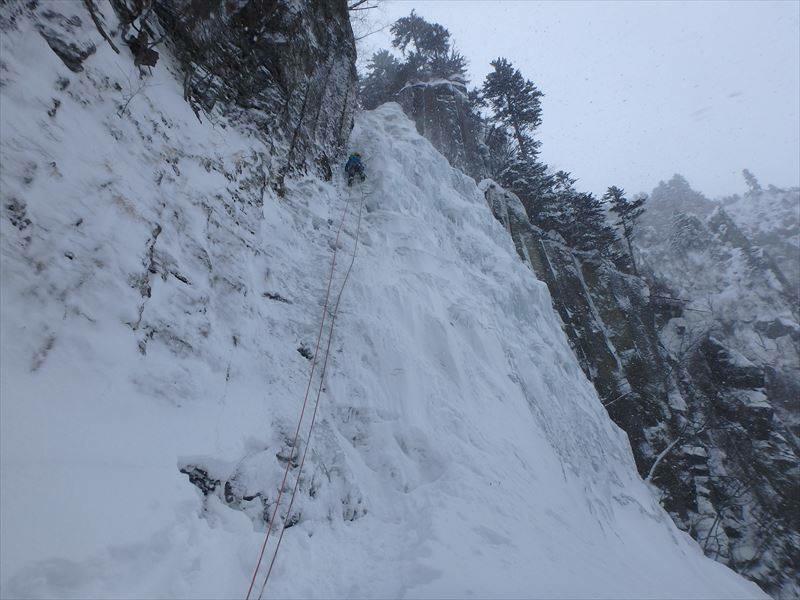この滝はこの1.2ピッチ目がハイライト上部は昨年登りましたが。今回は雪が多く雪崩のリスクもありパスしました。