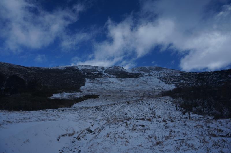 下山はスピードが出ることも加味しアイゼンを装着しましたが、何度も底を岩にぶつける感触を味わい、積雪の少なさを感じました。また、登山口~3合目は積雪がほとんどなく、靴がドロドロになりました((+_+))