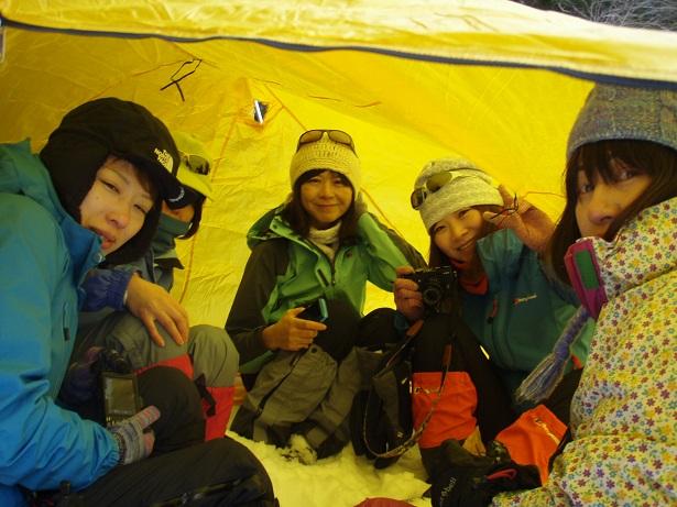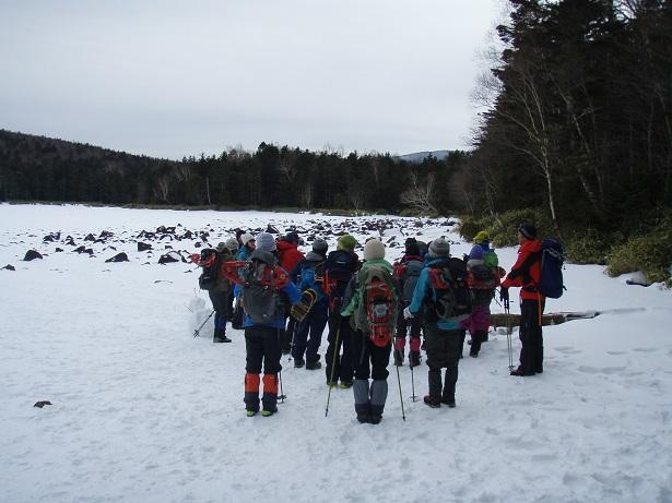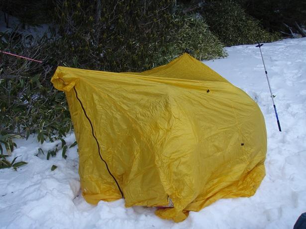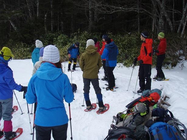 雨池では、スノーシュー歩行の練習をし、ちょっと寒かったのでツェルトも張り暖かさを体感しました