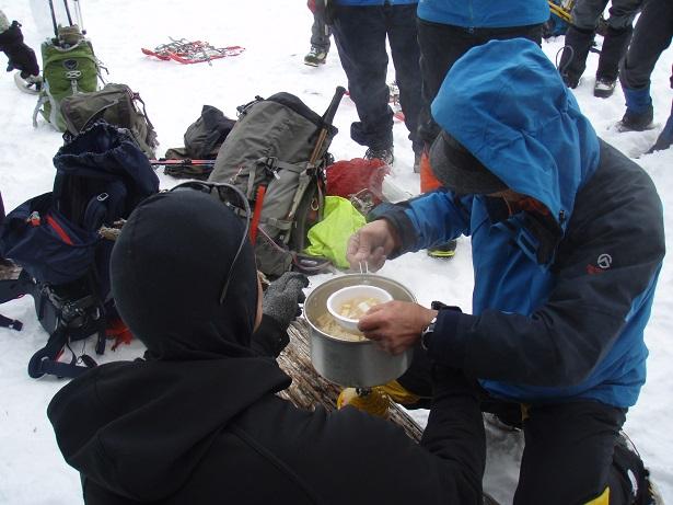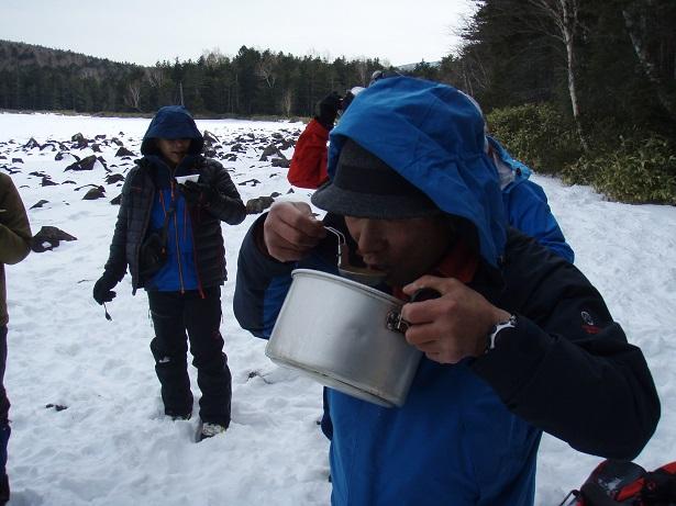 加藤ガイドがお味噌汁を作っていただき、体も温まりました!