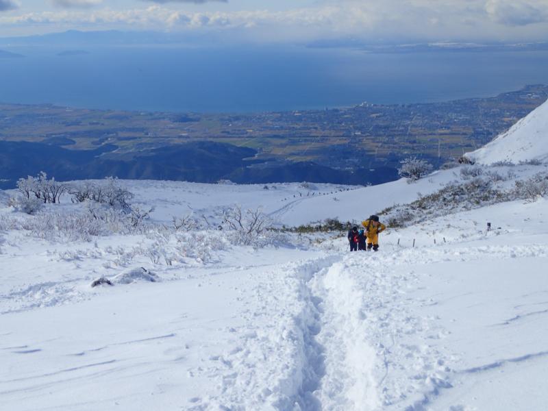 数日前の寒波のおかげで、5合目から先は直登できるほどの雪が積もっていました。