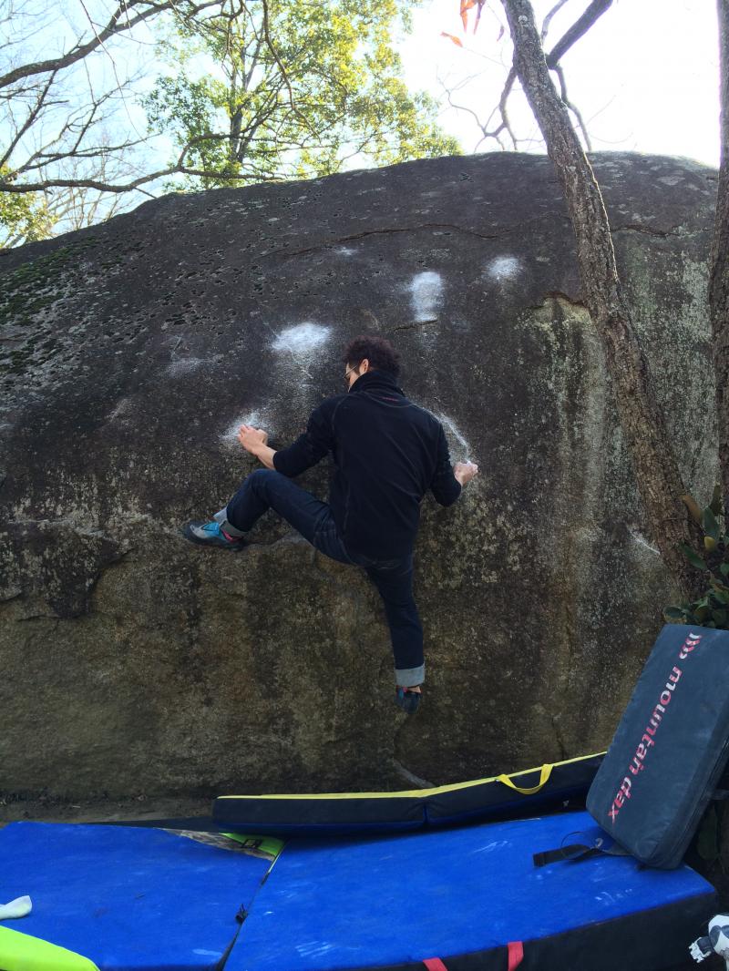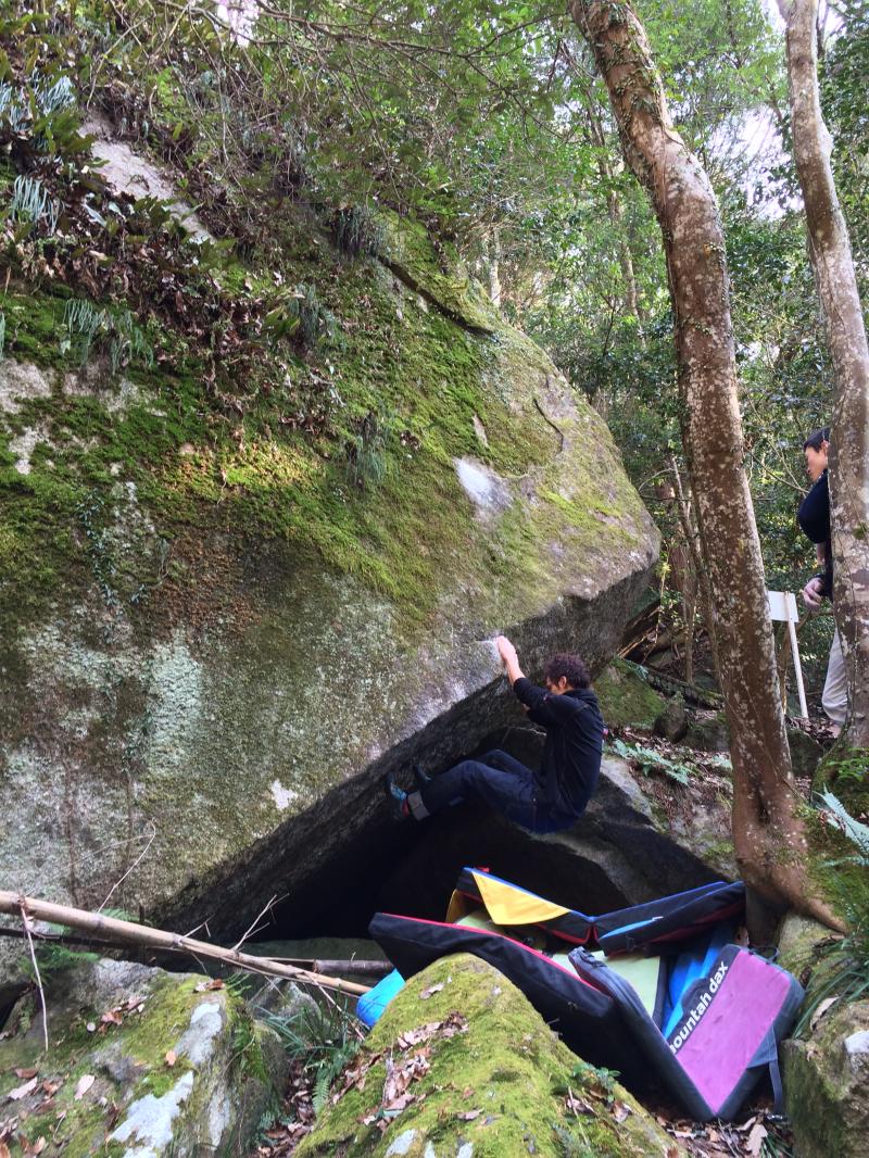 徒歩5分程で『蛇の目』等の人気の課題がある岩に辿り着けます。