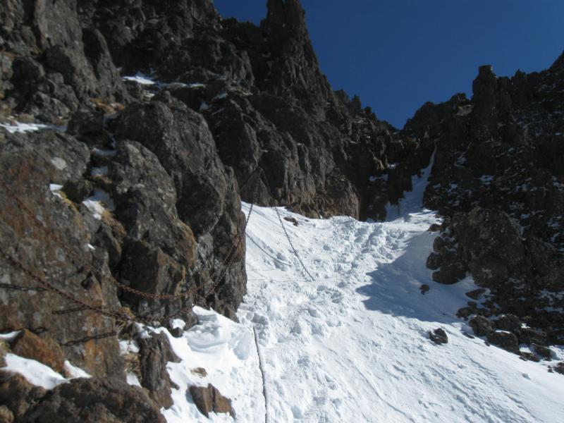 応急処置は施しましたが途中で再びストラップが外れると大変なので、無難に登れる赤岳にルート変更しました。