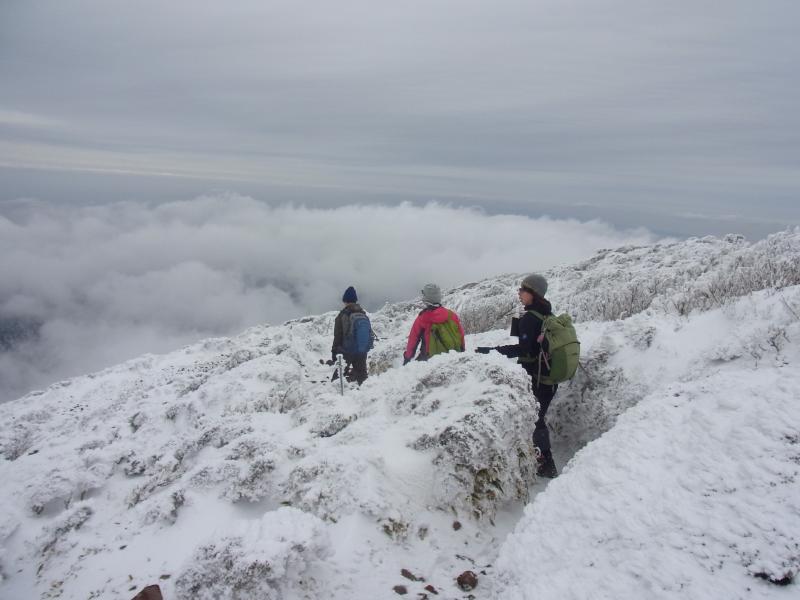ストック、軽アイゼン、防寒着、温かい飲み物ををお持ちください。