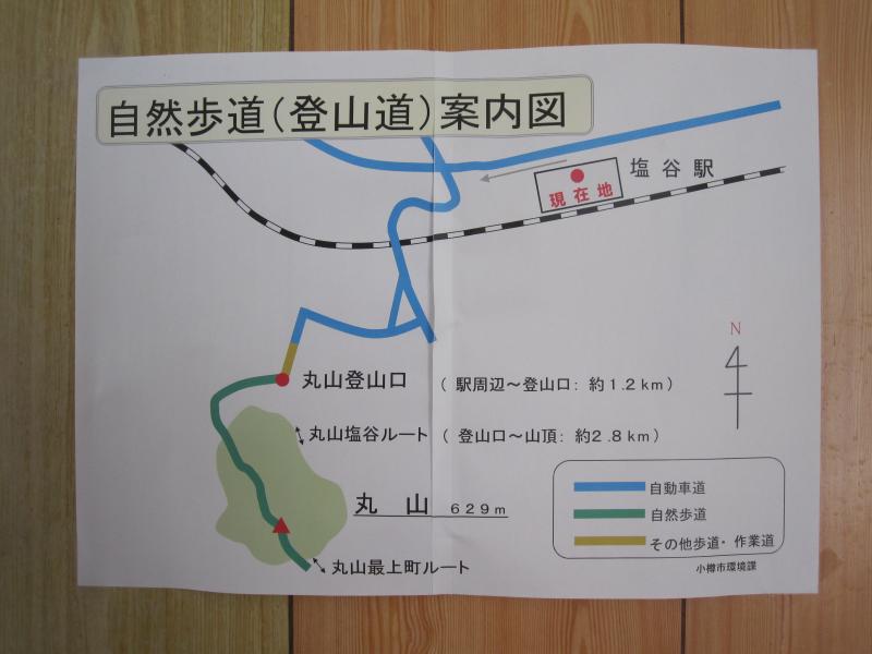 - 塩谷駅→(20分)→最終人家→(90分)→450m台地→(60分)→山頂→(90分)→塩谷駅