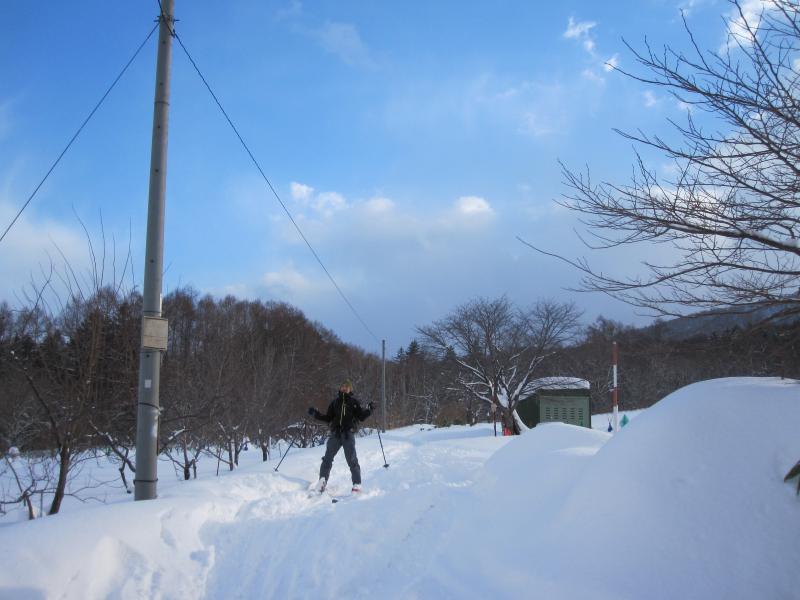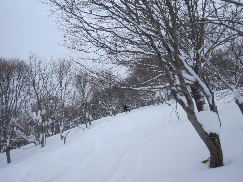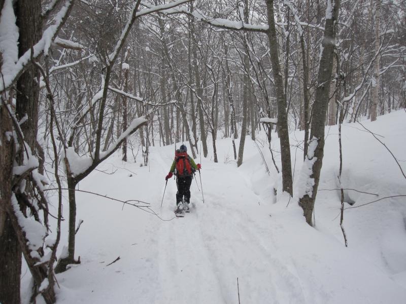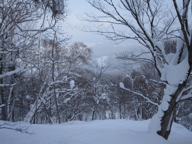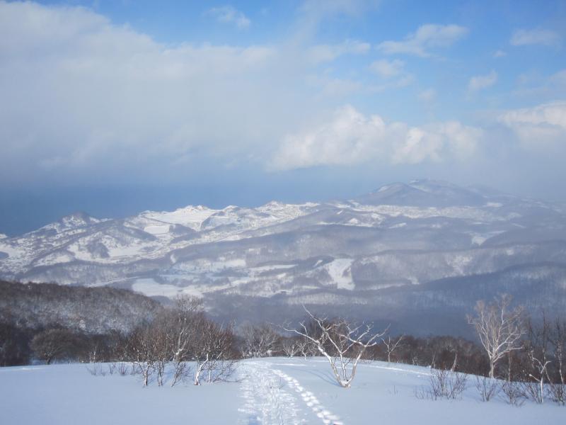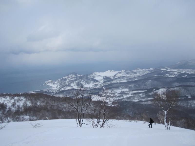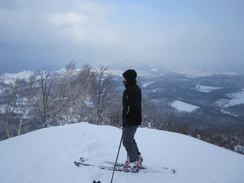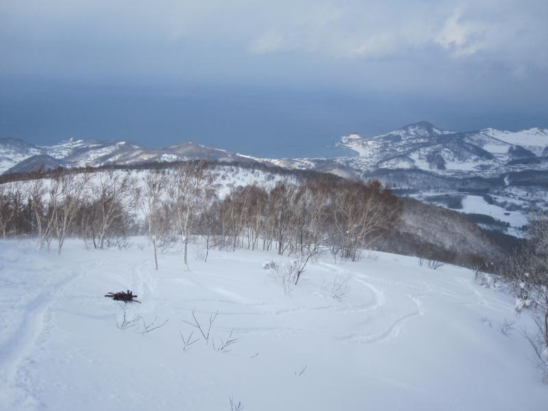 山頂からはぐるっと360°周りを見渡せる素晴らしい眺めで、今までの苦労が報われた気持ちになりました。海が近いのも圧巻です。涙もちょちょぎれる程に感動!しかし感動的な瞬間も手短に、早々に下って行かなければいけなかったので急いでスキーに履き替えて滑走開始。まさに激パウ。もふもふです。しかし下手っぴの我らにはまたしても難し過ぎる!既に付いている美しい滑走ラインをぶち壊すように、ズズズズとずり降りるのでやっとでした。疎林帯はスピードコントロールが難しく、ブッシュ帯では激突注意でかなり神経を使いました。我らはそもそももっとスキーの練習が必要だということを実感しました。下山後には太ももとおしりの筋肉がパンパンでした。ものすごく疲れて大変だったけど、ますますスキーの楽しさにハマりそうです。そして北海道は本当に素晴らしいです!山も海もあるし、食べ物は美味しいし。今度は夏にも来たいです。