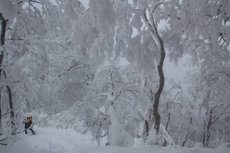 ブナの林床も霧氷から、モンスターに変わっていきます。