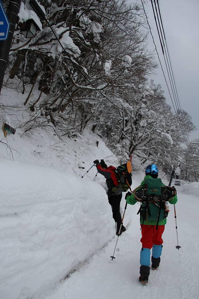 寒波後の天気予報は、気温高く雪崩危険ありの予報で、駐車場には警察官とテレビクルーも待機しており
