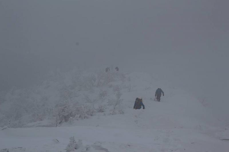 はやく行き過ぎ皆と離れましたが、吹雪のため待つことは困難な状況だったので進みました。