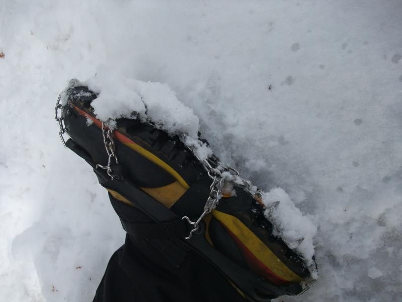 ニット帽、ネックゲイター、ウールの靴下、ハイカットハードタイプの登山靴