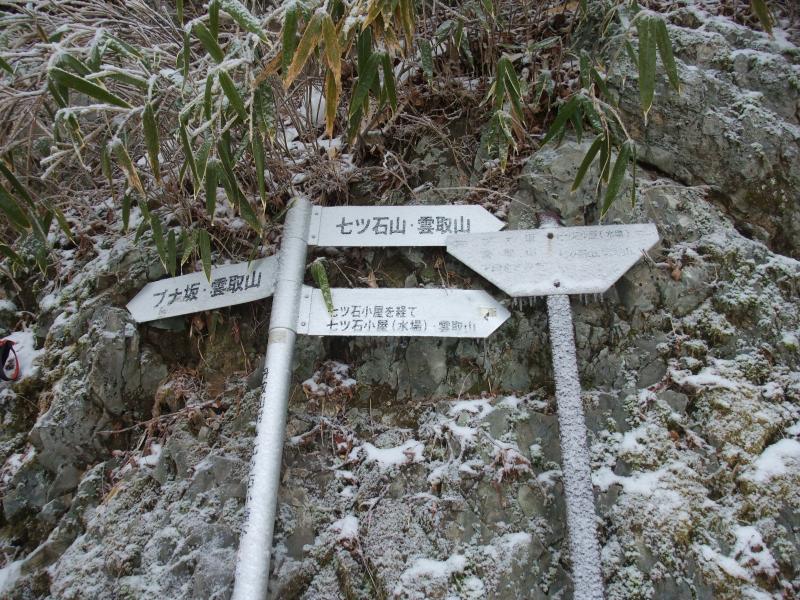 - 村営登山者駐車場(105)堂所(90)ブナ坂(45)奥多摩小屋(60)雲取山頂(30)奥多摩小屋(30)ブナ坂(60)堂所(80)村営登山者駐車場
