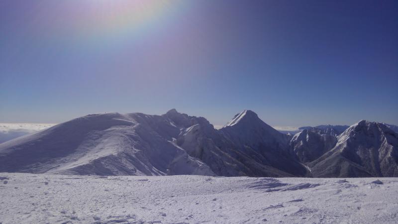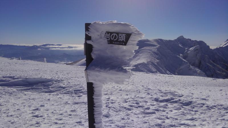 2日目は今回のメイン硫黄岳へ。バッチリとトレースがあるので快適かつ安心して歩く事が出来ました。樹林帯から時折顔を出す、赤岳や阿弥陀岳が綺麗に見える度に仲間のテンションが上がり、空気も澄んでいて気分も上々。今回は風も弱かったので、赤岩の頭でバラクラバなど装着して硫黄岳を目指します。風が弱くて安心していたのですが…硫黄岳山頂は風がやはり強く、一気に寒さに変わりますのでしっかりと防寒は準備していきましょう。山頂で無事に記念撮影も済ませ、しばらく頂上で写真を撮ったりしてから下山しました。