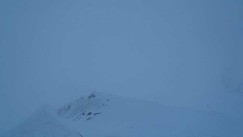 正面壁のルートを計画していましたが、朝から強烈に寒く、また視界も悪かったことから化物岩に転進しました。それでも右ルートを1ピッチ登ったところで天候が回復しないことから懸垂下降で引き返しました。