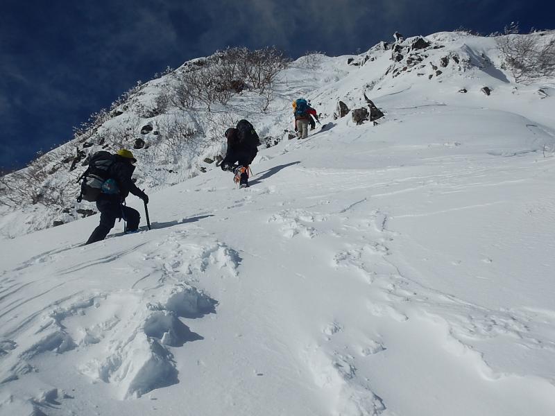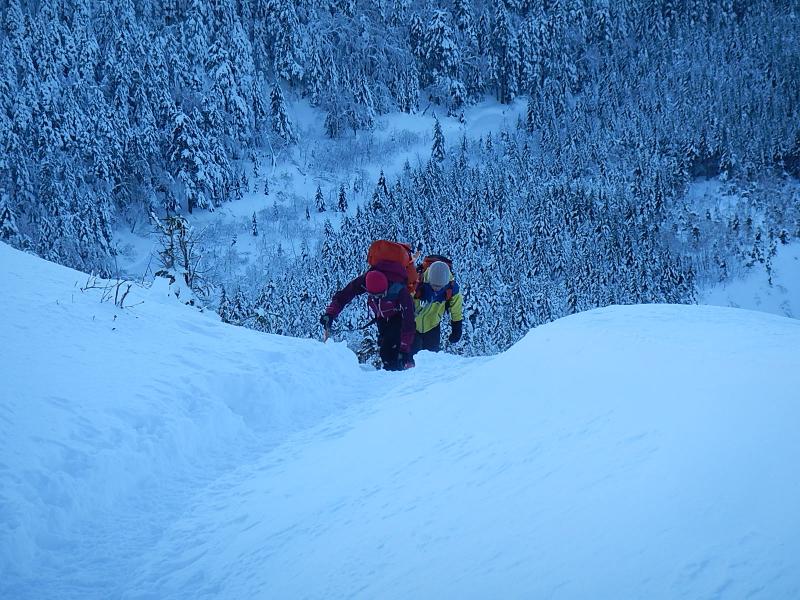 自分は二番手を歩いていたのでトレースの切り方を学ぶことができました。山は地元の方に案内していただくのが一番だと痛切に感じました。