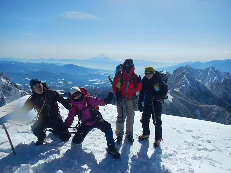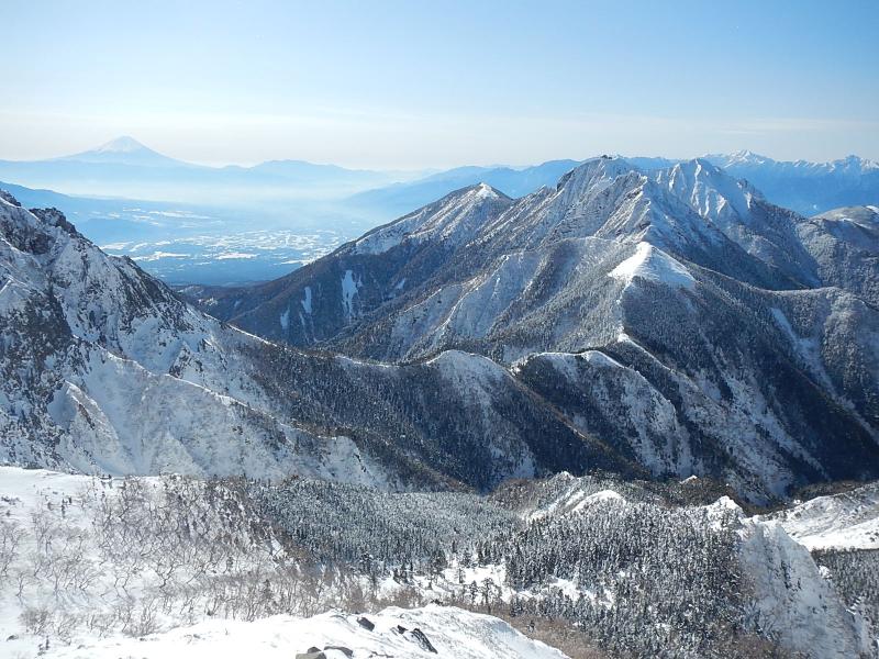 稜線で風も強くなく、山頂からは富士山が輝き、八ヶ岳の稜線、北アルプス 南アルプス の大展望です。