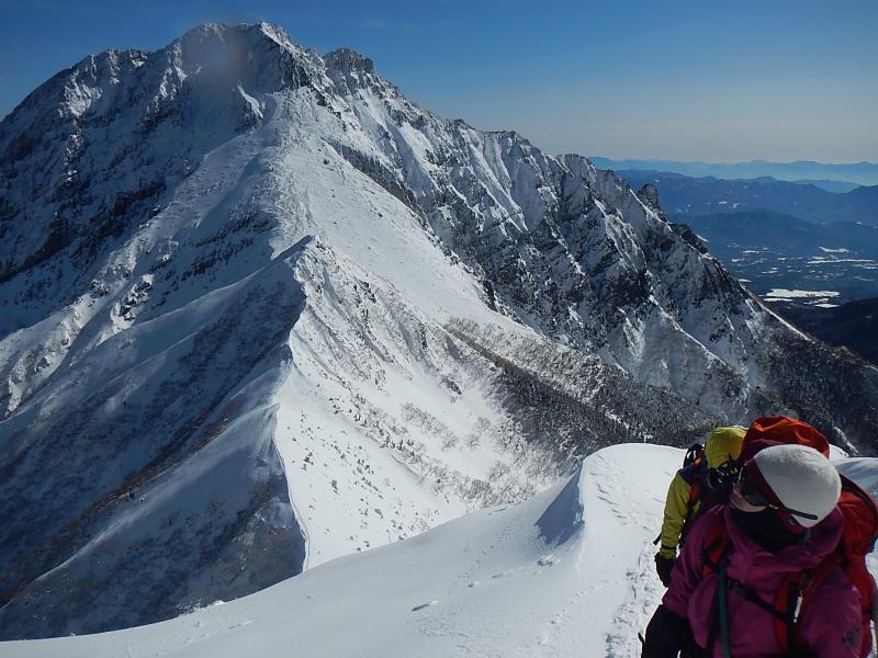 気温も高く、文三郎尾根途中でやっとハードシェルを着ました。