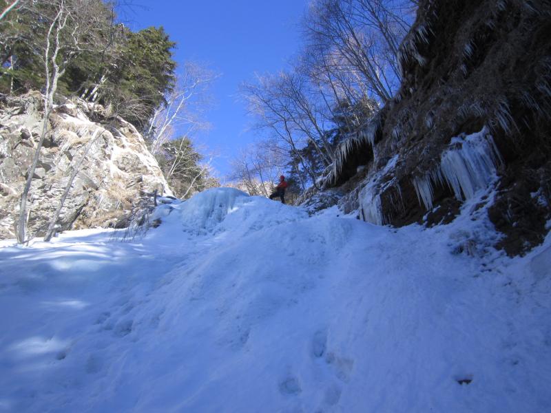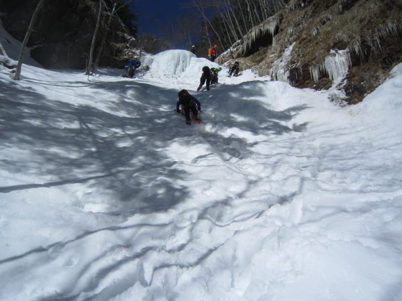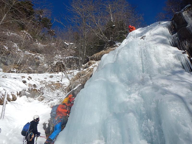 下る皆さまとお別れし、鉱泉に戻って、もう一度アイスキャンデイで復習クライミングをしてみました。