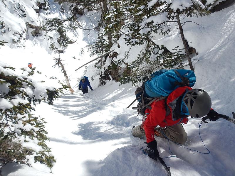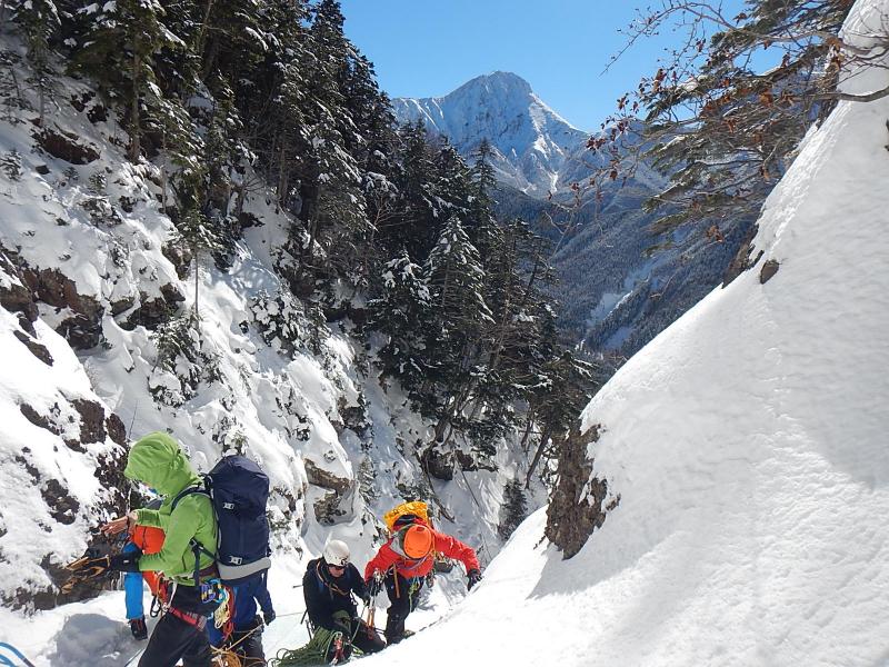 それぞれ ペアを組んで、登っていきました。垂直はアイスキャンデイとは違い難しい。