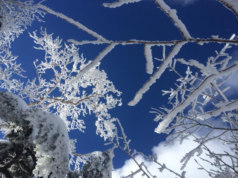 上を見れば青い空と樹氷のコラボが綺麗で…きて良かったと心底思う。