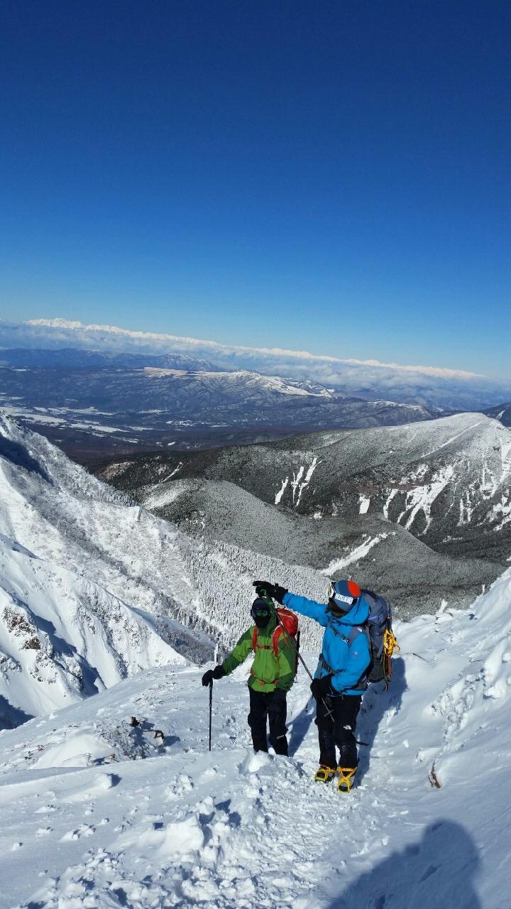 天気は最高!雲ひとつない晴天です!アイゼンをしっかりつけて文三郎の方から行きました!急な登りがちょっとこたえましたが、山頂でみた景色で吹っ飛びました!