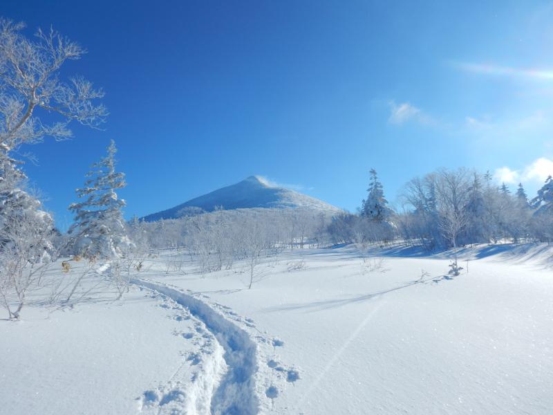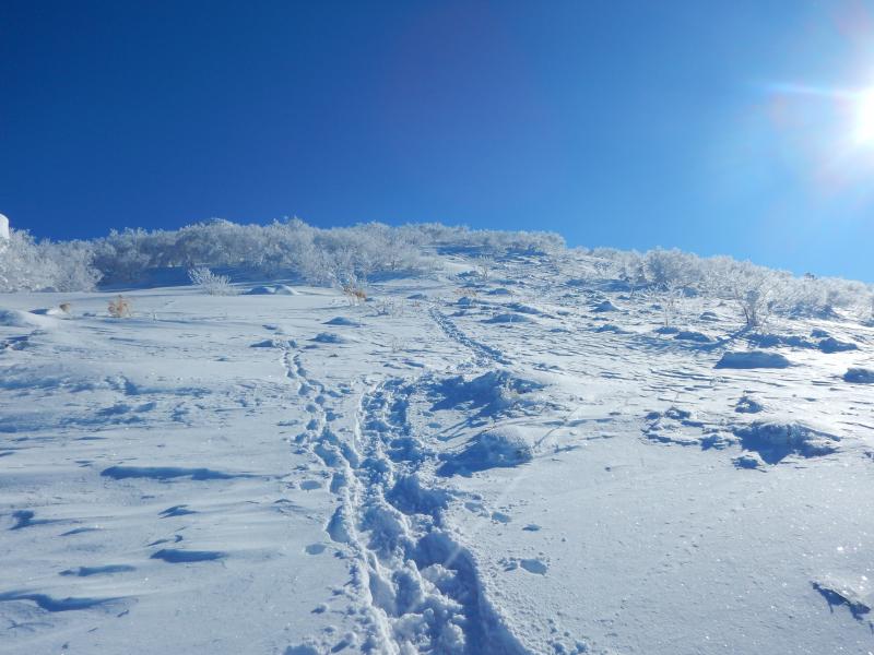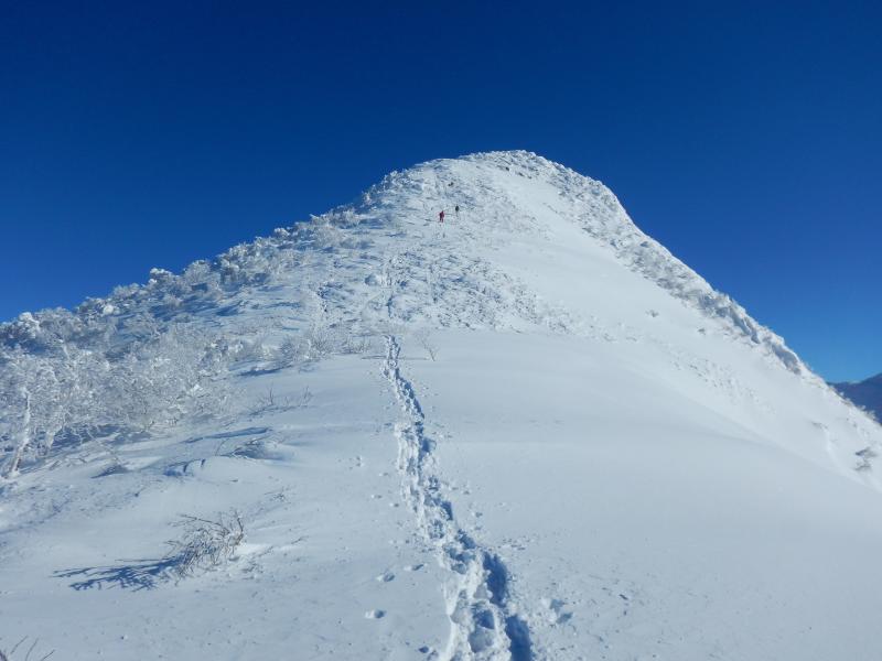 風の影響か、どちらの山頂付近も雪がカリカリに固まっているので、余裕があればアイゼンと履き替えて登頂しても良いかと思います。