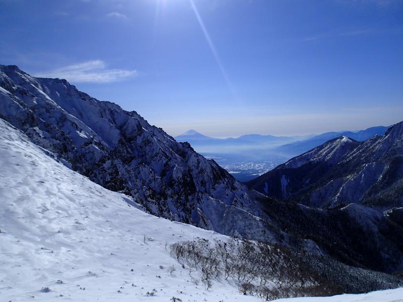 例年より雪が少ないからか、文三郎尾根も杭や階段がちらほら。