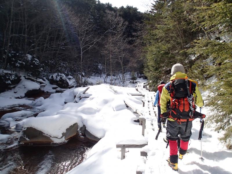 - 美濃戸口~赤岳鉱泉までは例年より雪が少ない影響で、雪のない場所・凍結場所があり。チェーンアイゼンがあると便利です!
