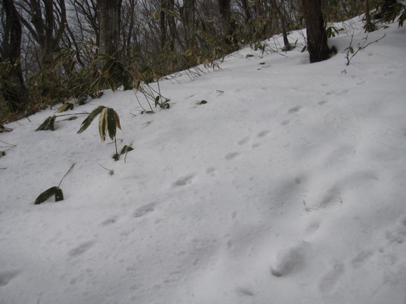 例年ほどの積雪はないものの、標高が1000メートル近くになると、しっかりと雪が積もって、今回は12本爪アイゼンで登りました。