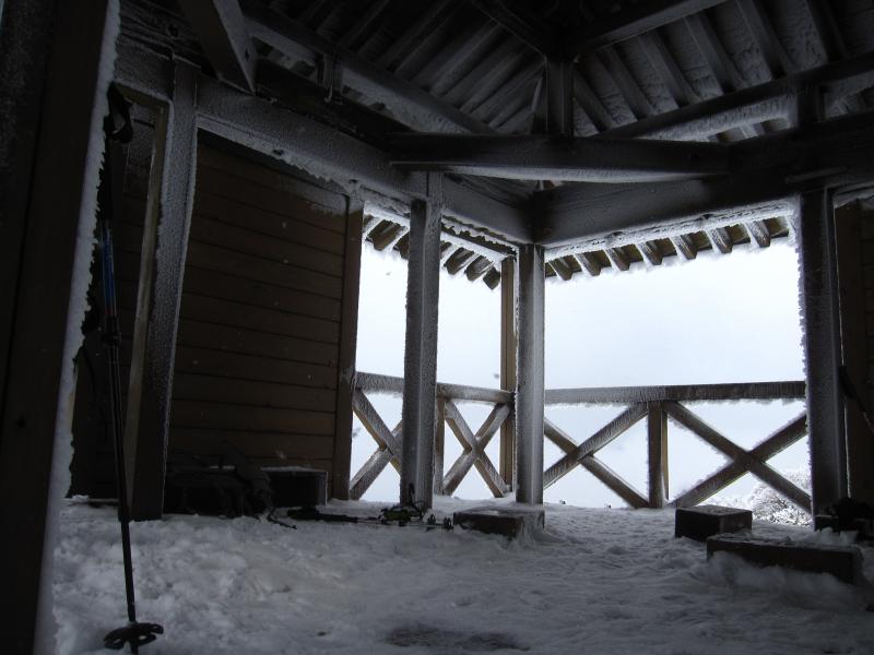 今回は避難小屋がいっぱいだったので、3等三角点にある東屋で休憩。