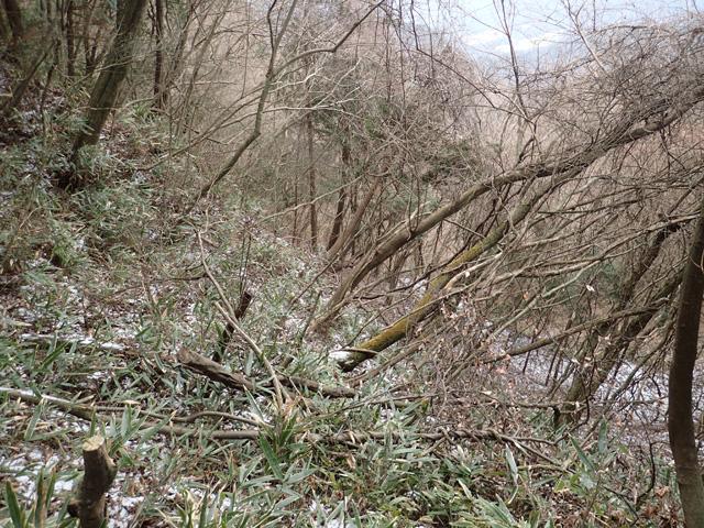 林道終点から少しづつ雪がでてきて滑り易い状態になっていたので、