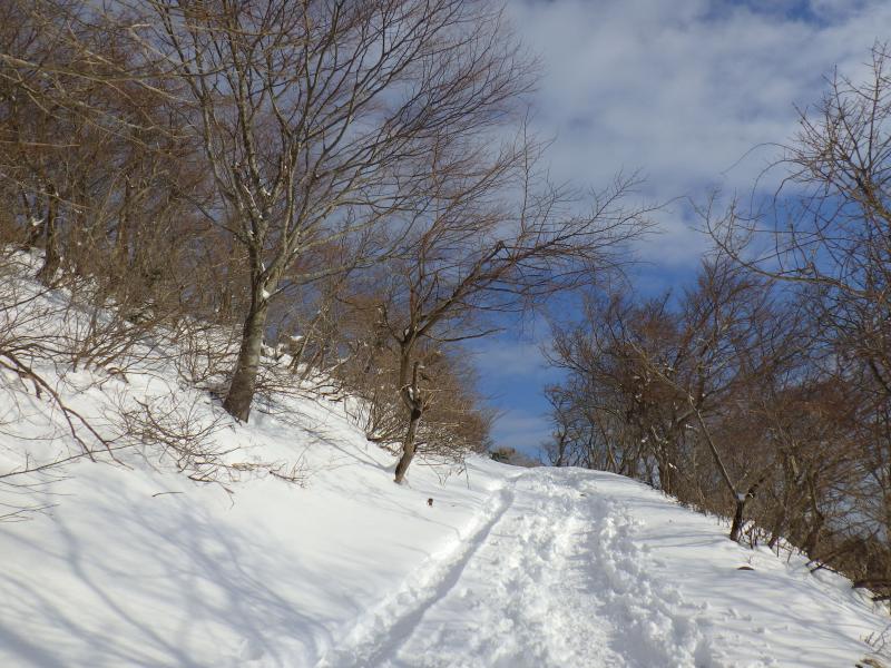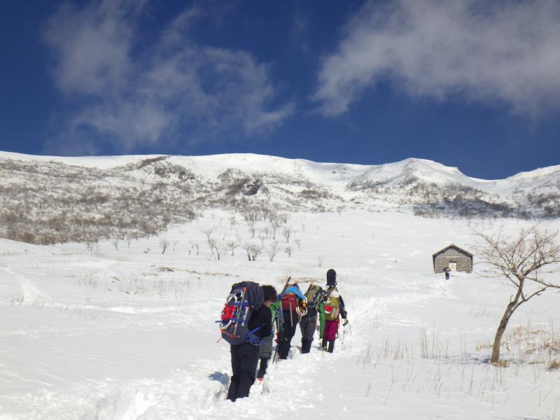 今回は週末明けと、当日の天候の良さでトレースがしっかりあったので、ワカンもアイゼンも全く使う事も無く、ぽかぽか陽気の中の登山となりました。
