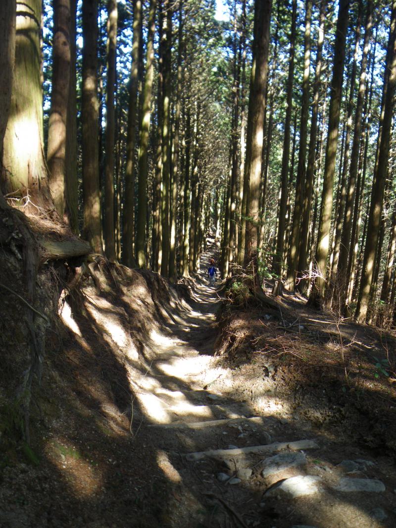 ⑥水越峠から来る登山道との分岐までは階段が多いです。この分岐から先は尾根が字のごとく、太くなります。