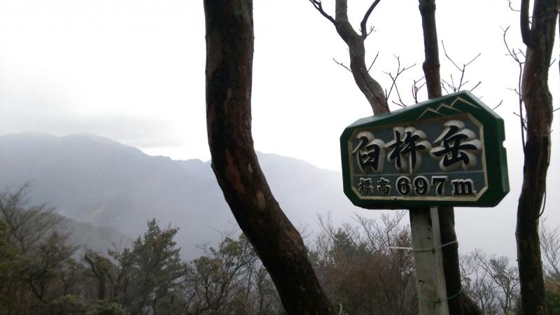 おとなりの仙ヶ岳(961m)はお昼ごろの急な冷え込みで樹氷がついていた。