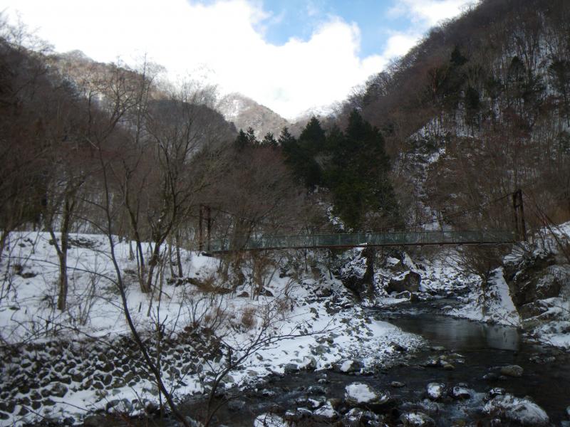 ②大川口の吊橋は破損の為、通行できません。国道309号を数m歩くと、河原に下降できそこからなんとか渡渉可能