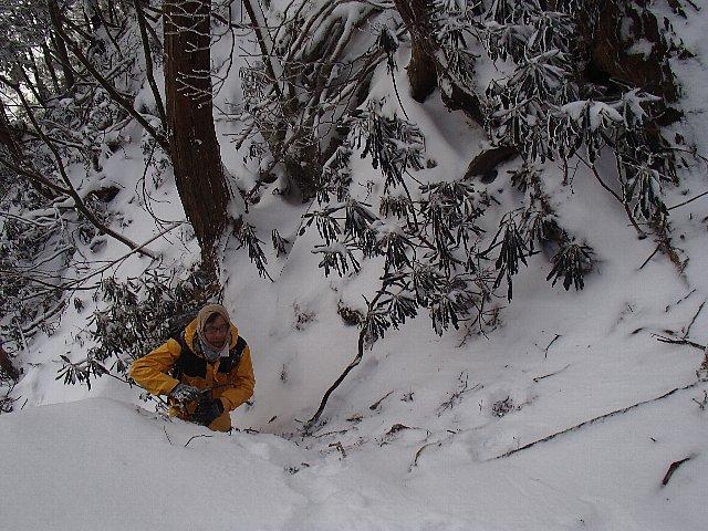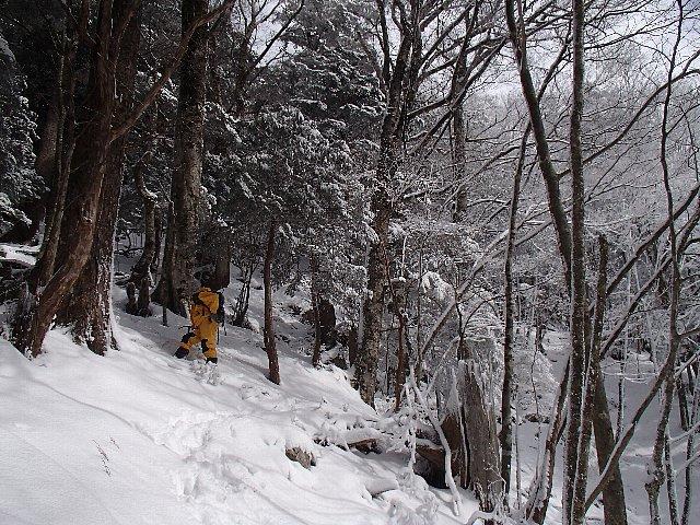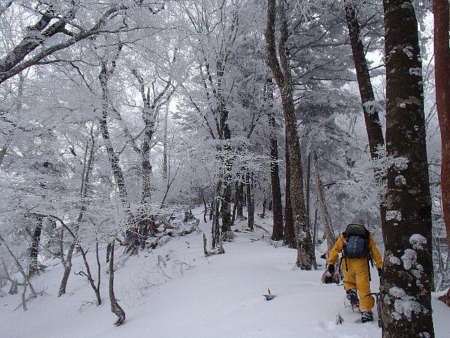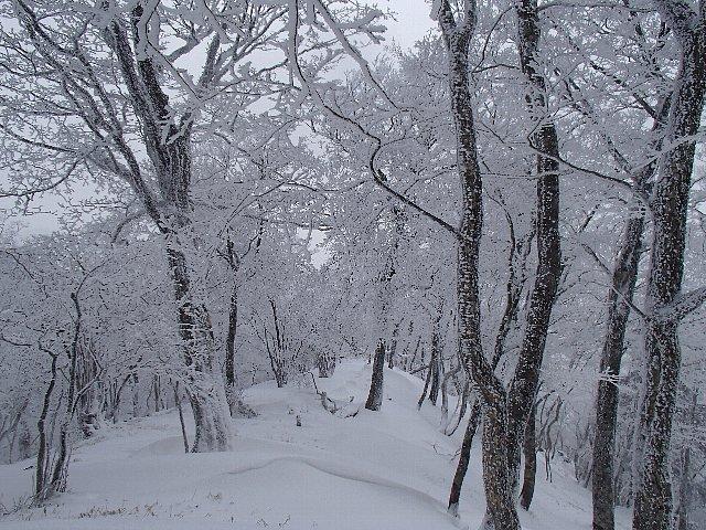 主稜線上でも根雪はなく、ふわふわの新雪を足で蹴散らしながら歩くことができました。
