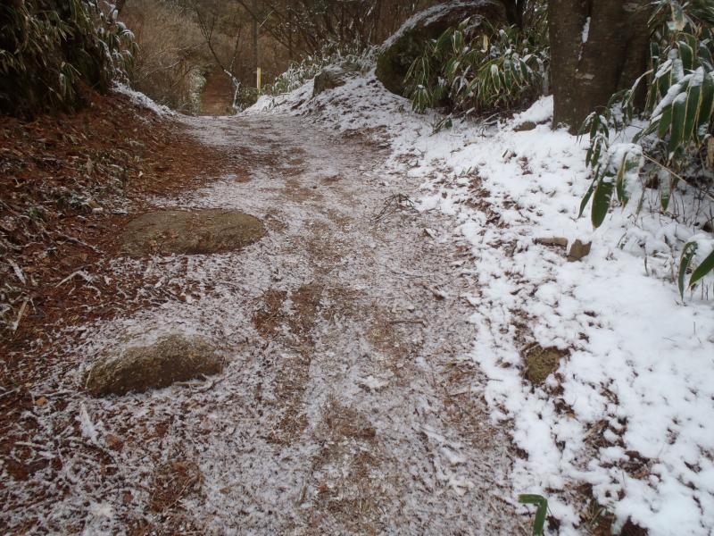 山中、雪がちらつく所もありましたが、行動中はさほど気になる気温でもありませんでした、ただ防寒着などは必須です。縦走路は軽アイゼンは使用しませんでした。