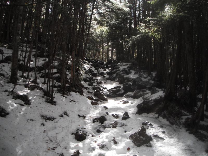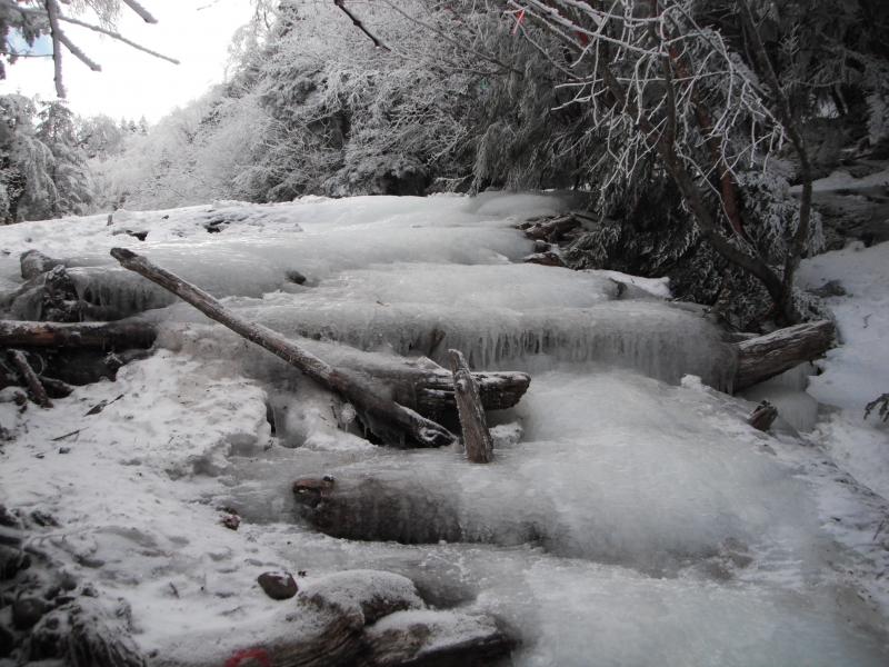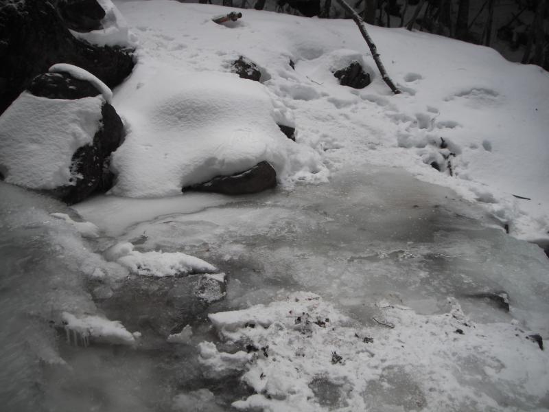 噂通りこちこちに凍った沢を渡る箇所が何度もあり、ツボ足ではかなり厳しい状況でした。
