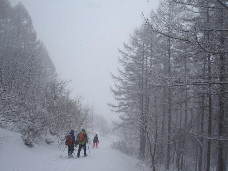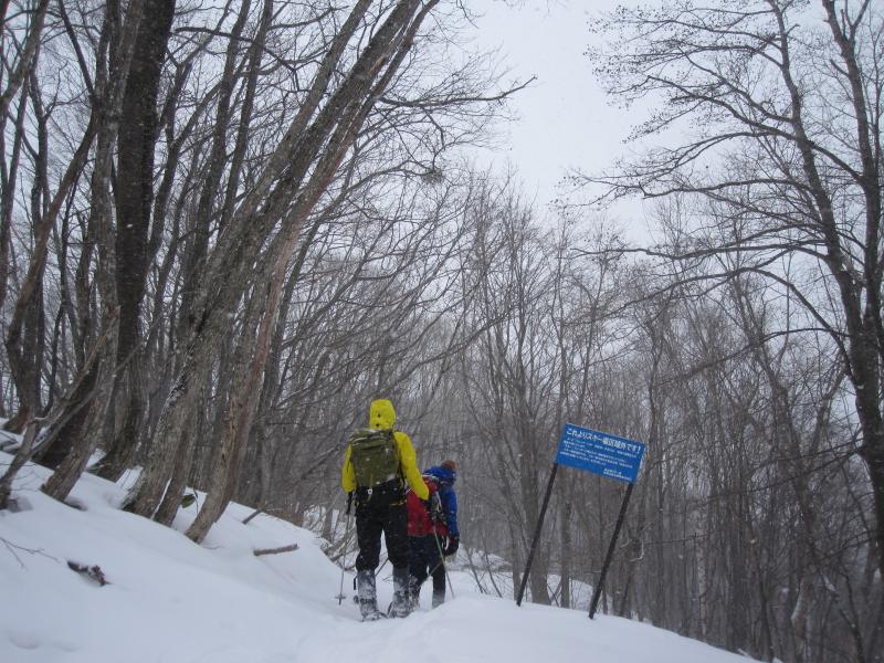 - 第6と第7ペアリフトを乗り継いで行くと時間を短縮出来ますが、下山は降雪、風の影響で使えない可能性あり。今回我らがそうでした。ゲレンデを歩いて下るか、スキー、スノーボードで下るかになります。少し遠回りになりますが、第9クワッドはペアリフトほど天候の影響はなさそうです。またゲレンデから宝台樹キャンプ場へ出るルートを把握するまでに少し時間が掛かってしまいましたが、そこからは林道歩きで分かりやすいです。最初樹林の尾根を歩くよりは右に避けて下を歩いた方が、尾根の左側に出来た雪庇を避けられるようですが、吹き溜まりのようになっていました。