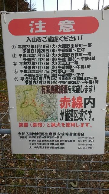 - 登山コースに雪はありません。上ノ町バス停から京都縦貫自動車道にぶつかる前に西山キャンプ場方面に右折しないと思うところに行けません。一番大事なのは、この西山一帯は害をなす獣駆除のため、猟銃が使われるので、日時と地域を確認してください。及び、道路幅拡張工事や河川の拡張工事が行われていました。