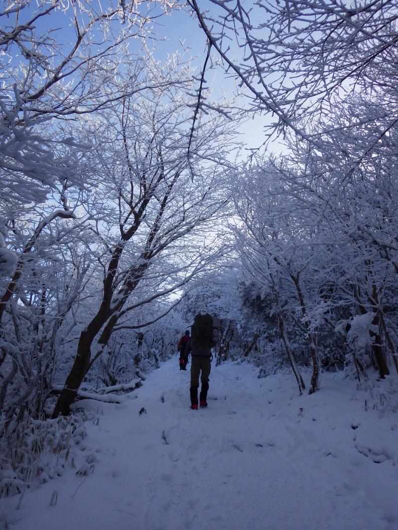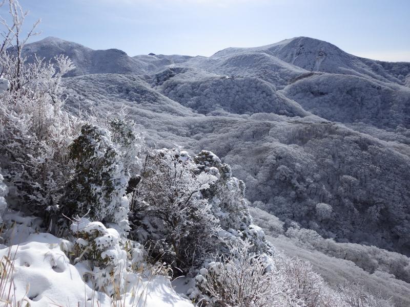 大船山もノーアイゼンであがれましたが私はびびりだしすぐへっぴり腰なってしまうので5合目からはずっとアイゼンを付けました。成長しすぎている霜柱が楽しかったです。