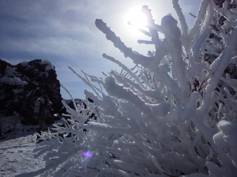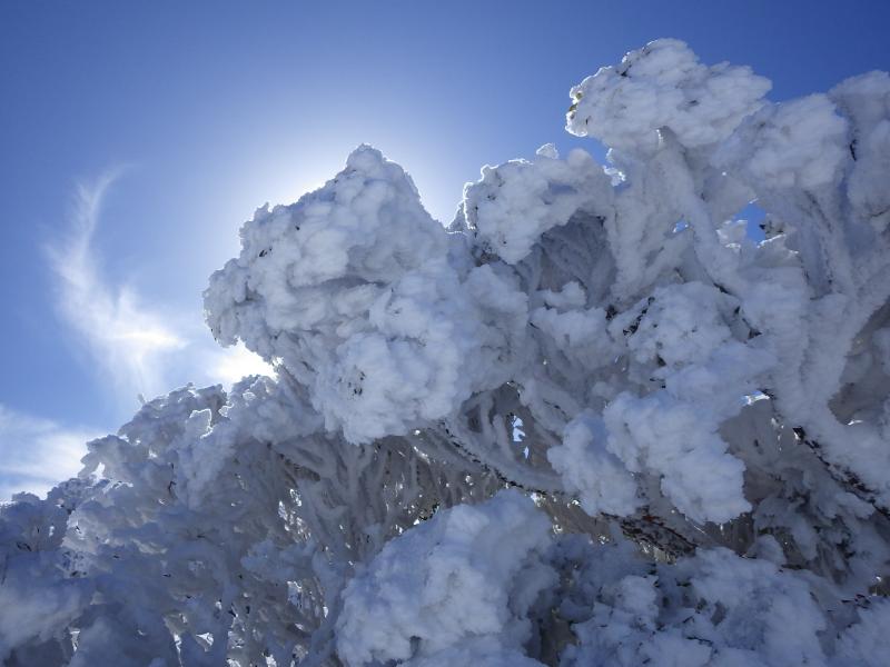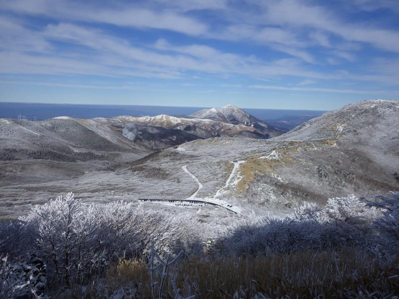 がっつり雪山!とまではいかないものの山々は白く、霧氷のついた木々も白く、そして空は青く風は穏やかで最高の雪山日和でした。どんだけ撮るんだ⁈とシャッター押しまくり。ついつい撮ってしまいたくなるんです、この景色。