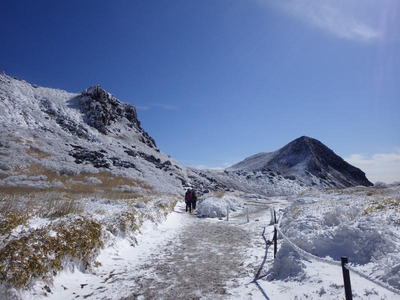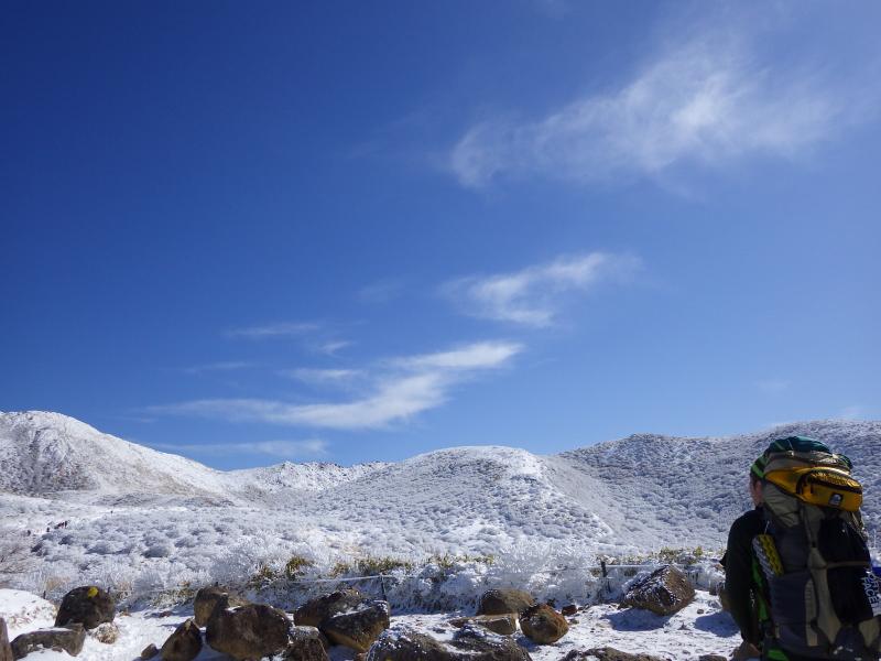 - 全体的に雪はついているものの軽アイゼンまたはチェーンアイゼン場所によってはノーアイゼンで歩けました。久住分かれから先は岩場になるのでアイゼンない方が歩きやすいかもしれません。
