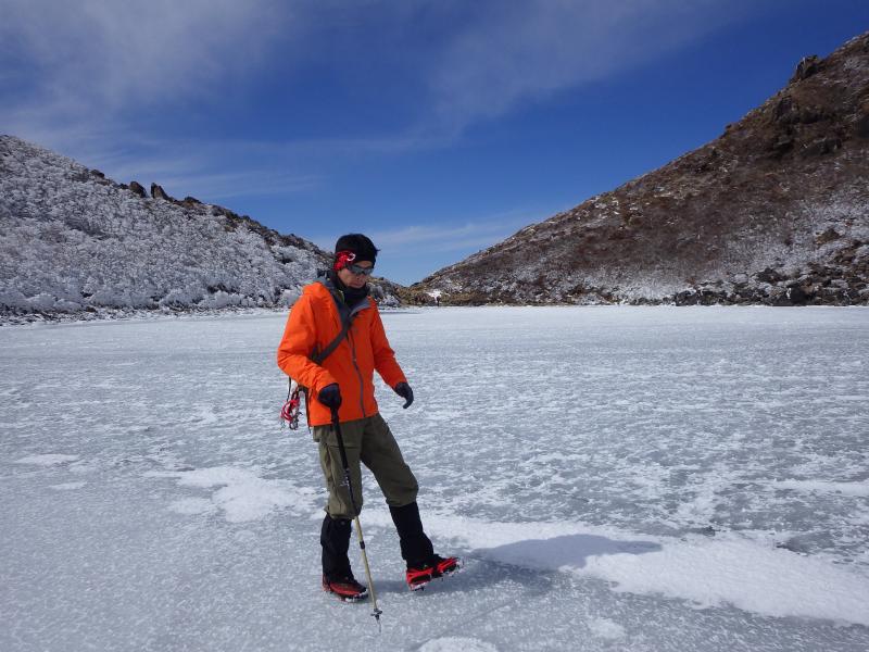 御池しっかり凍っていて歩けました。アイゼンを付けていないと滑りやすいので気をつけて。わざと滑りを楽しんでいる人もいましたが(笑)