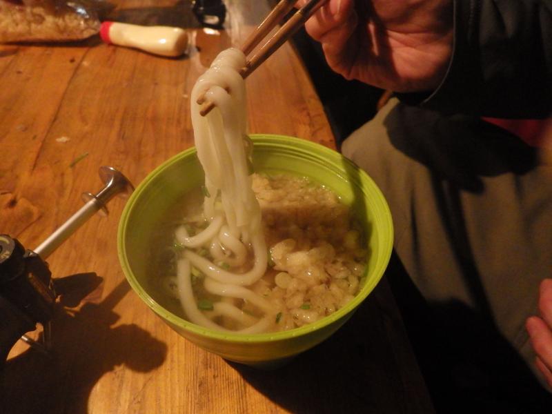今日はつまみを持ち寄って居酒屋談話室スタート。まずはいわしめんたいが登場!!山でこれが食べられるなんて!!さらにイカ焼きにみりん干し。私はトッポギにチヂミと韓国料理で。それからブロッコリーのアーリオオーリオ。マリネも作っていきました。(ハウスのスパイスクッキングシリーズ、とっても便利でおすすめですよ)豚肉のシソ巻きもあったり。あっ、めんたいソーセージ見つけてこれも持参。美味しいです!どんだけ食べて飲むんだ?さらに〆にウェストのうどん!