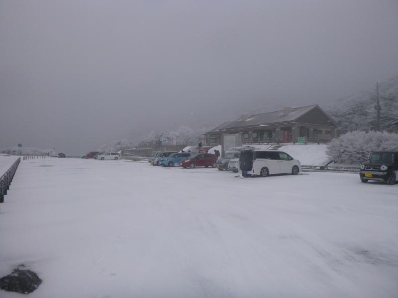 瀬の本でタイヤチェーンを装着して牧ノ戸へ向かいました。